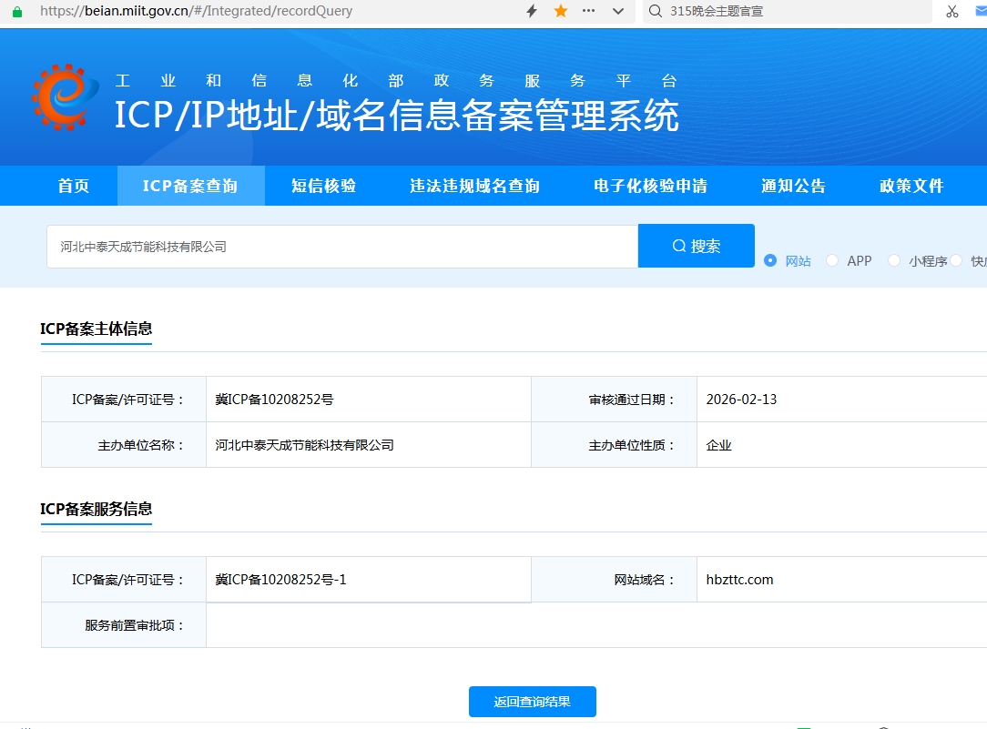 河北中泰天成官網(wǎng)備案網(wǎng)站域名:hbzttc.com |